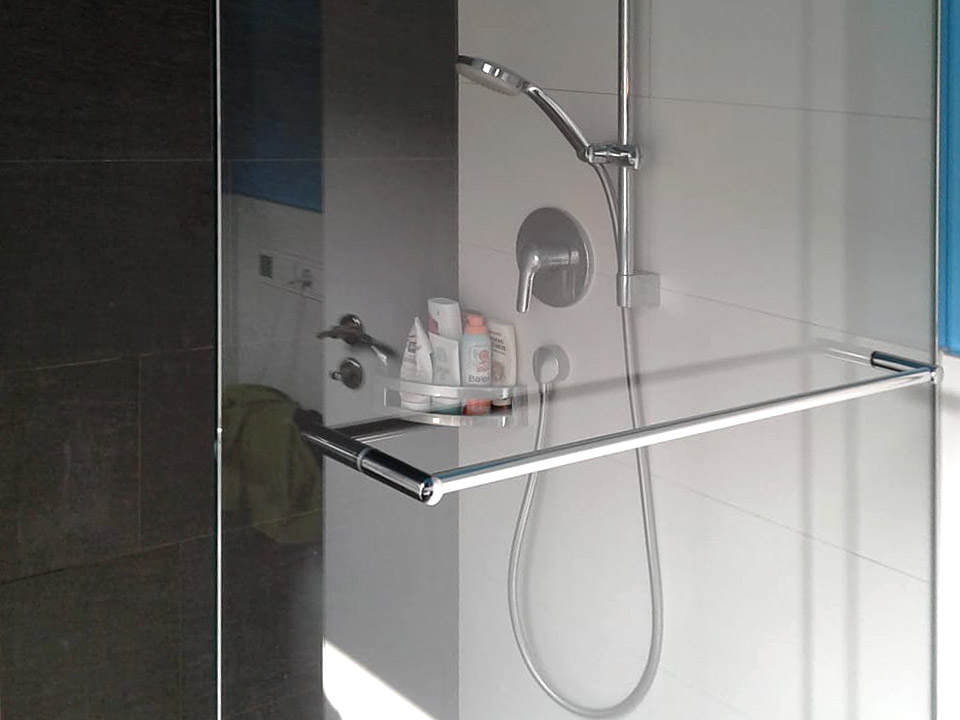 Auch feststehende Duschwände aus Sicherheitsglas mit passender Wandhalterung und Stabilisierungsstange biete ich an.